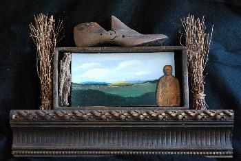 Wood, Twigs, Last, Metal Printing Plate, Bark and Acrylic on Canvas